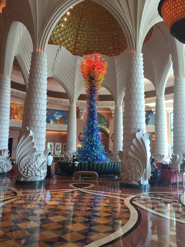 January 29, 2023August 25, 2023 Luxury Hotels – Atlantis, The Palm I couldn’t not do a whole post on one of my favourite hotels in the whole world, there is far too much to squeeze into one paragraph. Atlantis is located right at the end of the Palm, the perfect location for a hotel of this beauty. To get there by car there’s an underwater tunnel or you can take the above ground monorail with the most magnificent view of the palm and of Atlantis. The view of Atlantis from the monorail Entrance hall to the Atlantis Being on the outside of the Palm, the Atlantis does require driving to get to most main tourist spots. It’s around a half an hour drive to the centre, where the Burj Khalifa is located and is a little bit less to get to the Marina. However the hotel itself is surrounded by plenty to do if you prefer to stay local. There’s beautiful beaches to walk or relax on, the infamous water park (we’ll get to that), and surrounding luxury hotels to nose around, such as the Brand New Atlantis: The Royal right next door. One of the most famous parts of the Atlantis is the 11 million Litre aquarium that holds 65,000 marine creatures including 100 sharks and Sting rays. But what makes this hotel aquarium so unique is not just the size, it’s what it offers; There’s an underwater restaurant, underwater suites, snorkelling opportunities as well as getting up close to feed the sharks and sting rays. No matter how many times you pass ‘The Lost Chambers Aquarium’ on your stay, it never gets old! Moving on to my favourite part of Atlantis, the Aquaventure Waterpark. This isn’t an ordinary warer park, it’s got over 105 slides. Each slide is different, some with rubber rings, some sit up to 6 people, some whiz you through the aquarium and others are only for the brave! Running through the Waterpark is a lazy river, you can sit back and relax on single or double rings (for a few minutes) and then have some crazy rapids to wake you up. It’s a great way to cool off as well as having a good laugh too! There are cameramen all around the lazy river ready to take a few snaps of you and your group that you can collect at the end of your day for the best memories. Now for the foodies, the Atlantis is full of restaurants of every culture and every budget so that you can adjust to your taste (literally). Some of my favourites include ‘Hakkasan’ – A traditional cantonese style restaurant, ‘Gordan Ramseys Street Bread Kitchen’ – A classic british restaurant, ‘Ossiano’ – The underwater Seafood restaurant with a Michelin star and ‘Seafire Steakhouse’ – A Meat and New York Based Restaurant. All of the above plus many more make up the incredible collection of Signature restaurants with lots more casual restaurants and café’s too. Last but not least, there is a wide range of room/suite types to give you a broad choice of budget. The top suite being the Grand Atlantis suite, stayed in by Kim Kardashian herself, which is the true height of luxury! We’ve had the chance of staying in the Presidential suite, Terrace suite and Regal Suite, all of which give you access to the imperial lounge and again make for a truly luxurious stay. There are more suites on offer including the underwater suite and then King rooms or Queen rooms. There’s also a choice of Palm or Ocean view as every room has a spectacular view of different sides of Dubai. All Posts Luxury